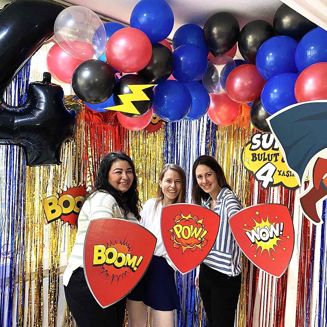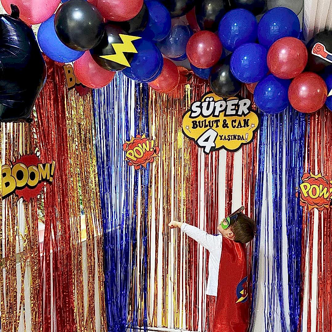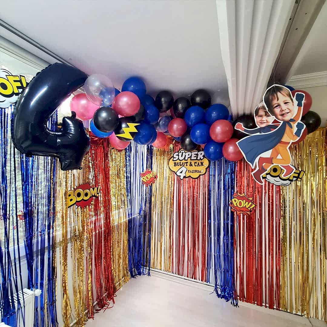 Süper Kahramanlar Tema Doğum Günü Balon Zinciri Seti Fon Perdeli Doğum Günü Süsleme Seti